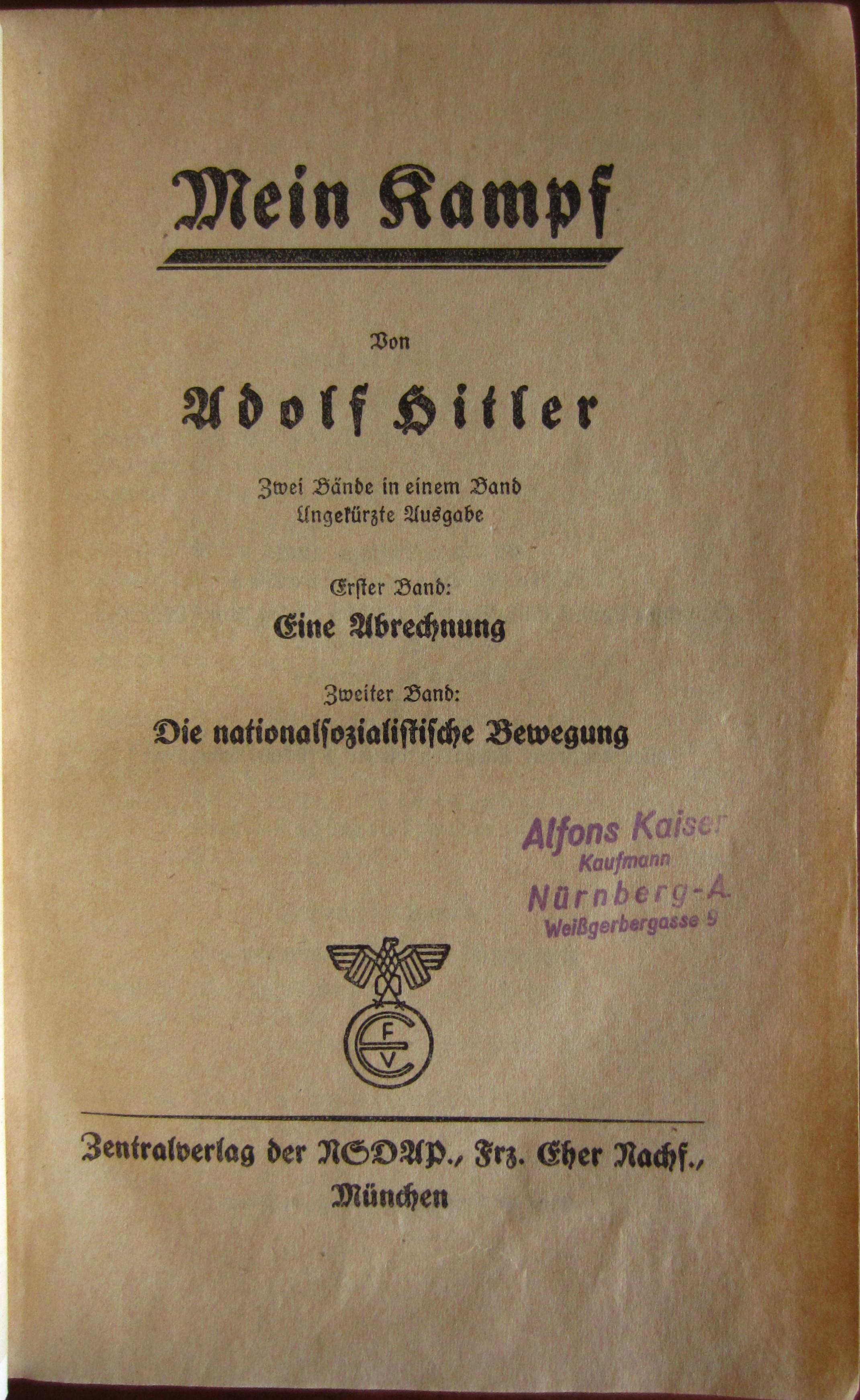 Zentralverlag der NSDAP. Frz. Eher Nachf., München