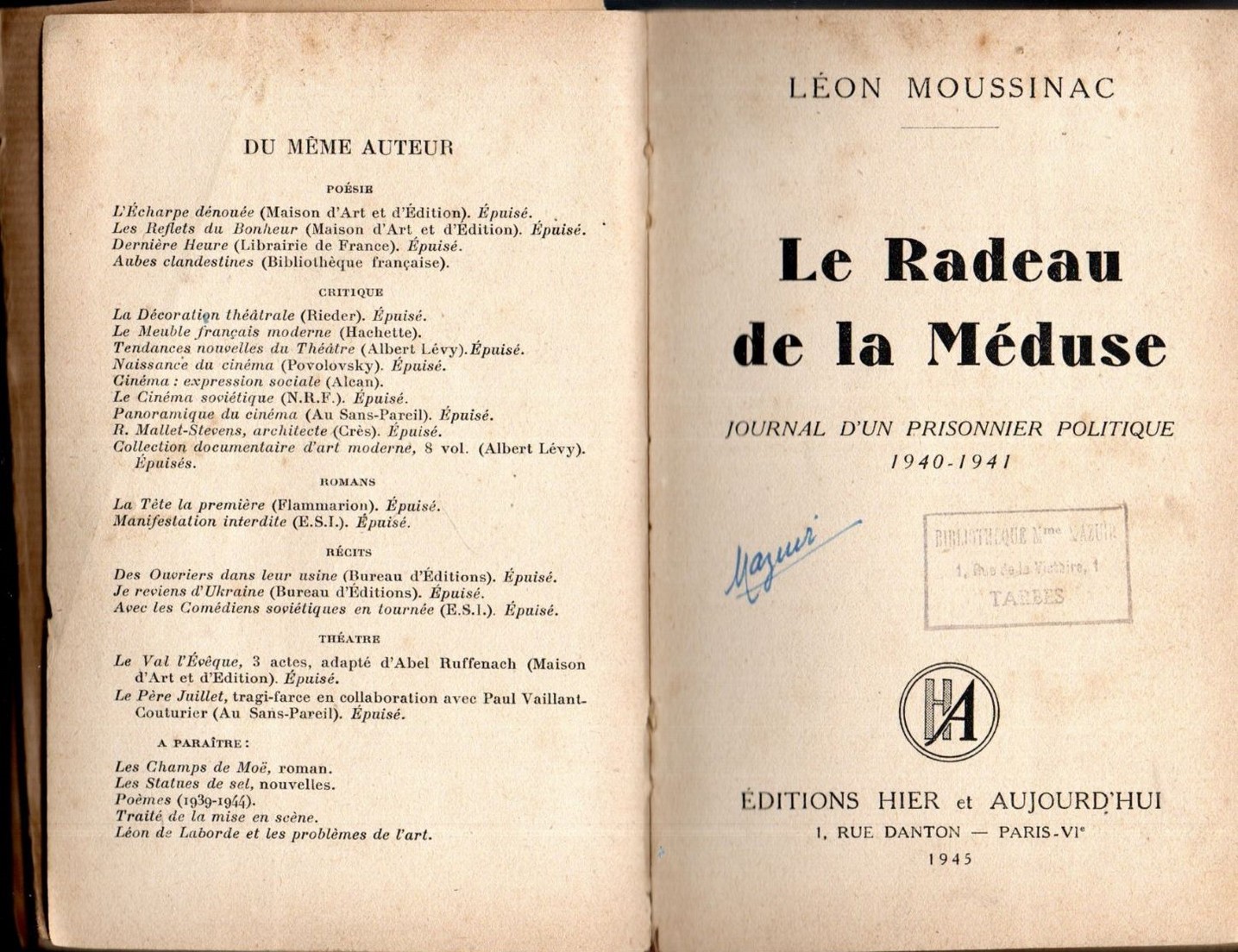 - Editions Hier et Aujourd'hui, Paris