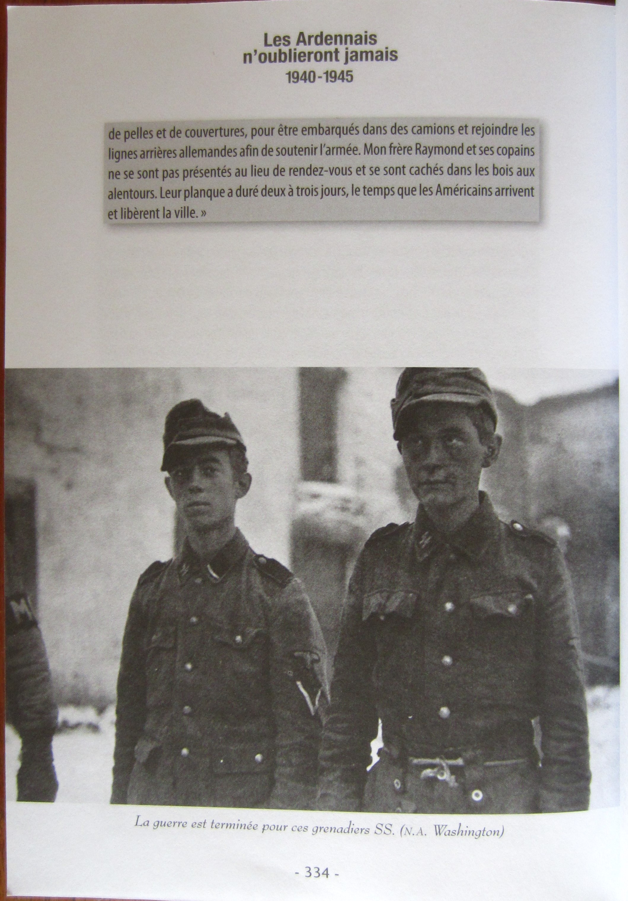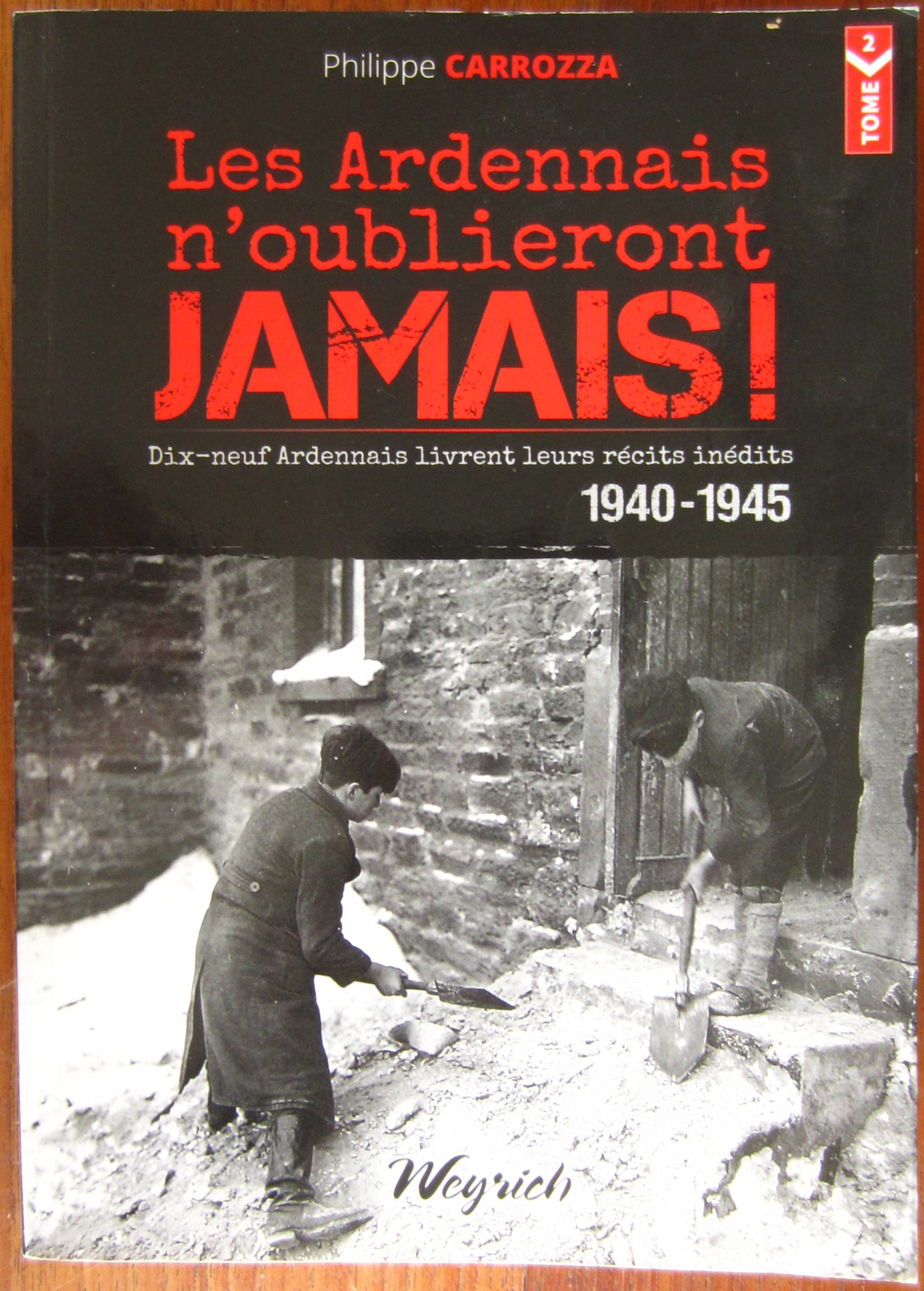 - Comme dans le premier tome, dix-neuf Ardennais racontent leur guerre. Ils ont aussi été interviewés par Philippe Carrozza, auteur de 1940-1945, Ils m’ont volé mes plus belles années, paru en 2012. 0Dans ce second tome, on découvrira cinq témoignages inédits de la province de Liège, cinq autres de la province de Namur, six de la province de Luxembourg, deux des Ardennes françaises et un autre de l’Ardenne grand-ducale. 0Des récits émouvants détaillant la vie dans le maquis, dans les camps; la Campagne des dix-huit jours; mais aussi comment on se débrouillait pour survivre sous l’occupation. Louis Pasterger, de Stavelot était garde frontière; Alexandre Lejeune, de Lierneux a été prisonnier en Allemagne. Le Liégeois José de Coppin était dans l’Armée secrète à Erezée; Roland Titeux avec les maquisards de Sugny; Daniel Mathy, d’Oignies-en-Thiérache a combattu jusqu’au pont de Remagen. Albert Hannuzet était dans l’Armée blanche à Couvin; le Français Roland Briffaut a connu le maquis du Banel, près de Florenville et le Givetois Paulin Garrez a combattu dans les chars avec le colonel de Gaulle. Aloyse Poull, le Grand-Ducal, a été enrôlé de force dans la Wehrmacht, etc. 0Les villes et villages ardennais suivants sont évoqués dans ce 2° tome: Stavelot, Cul-des-Sarts, Lierneux, Liège, Erezée, Sprimont, Sugny, Vresse-sur-Semois, Viroinval, Oignies-en-Thiérache, Gedinne, Louette-Saint-Denis, Couvin, Chimay, Ciney, Houyet, Mesnil-Eglise, Fenffe, Regné, Bihain, Vielsalm, Marche-en-Famenne, Herbeumont, Saint-Médard, Gouvy, Paliseul, Daverdisse, Malmedy, Williers (France), Gespunsart (France), Givet (France) et Urspel (Clervaux) au Grand-Duché.