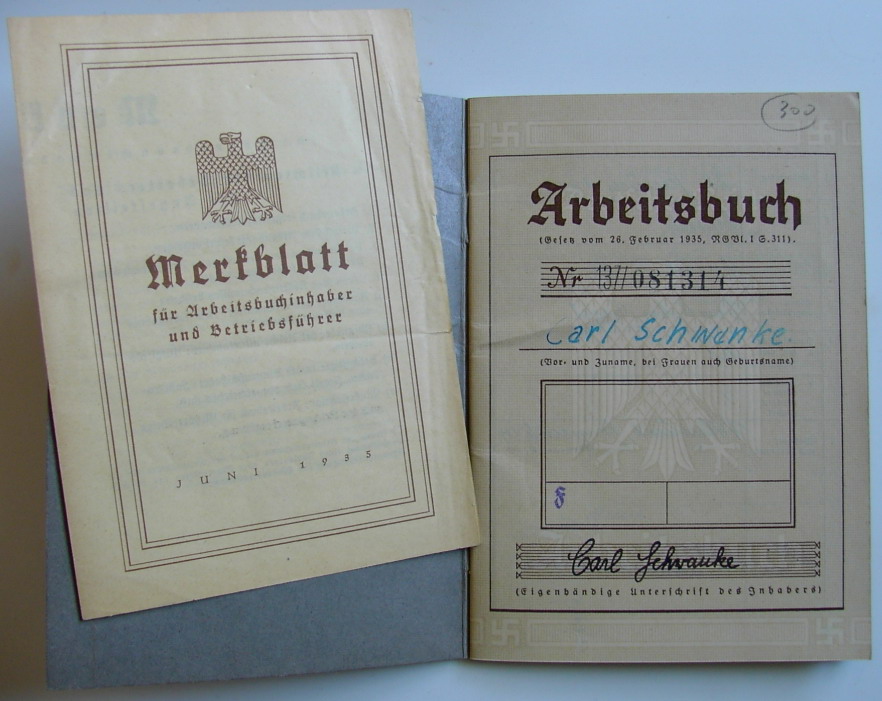 Arbeitsbuch 1st model Nr 137-081314 + Merkblatt - Carl Schwanke