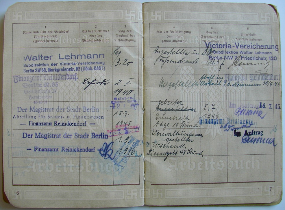Arbeitsbuch 1st model Nr 137-081314 + Merkblatt - Carl Schwanke
