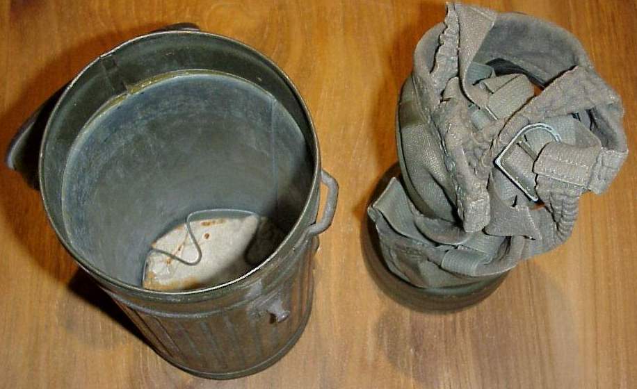 Gas mask in metal container