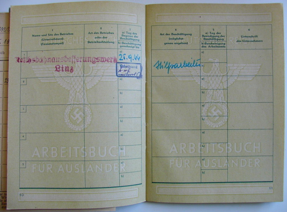 Arbeitsbuch für Ausländer - Nr A 379-030223 - Reichsbahnausbesserungen Linz