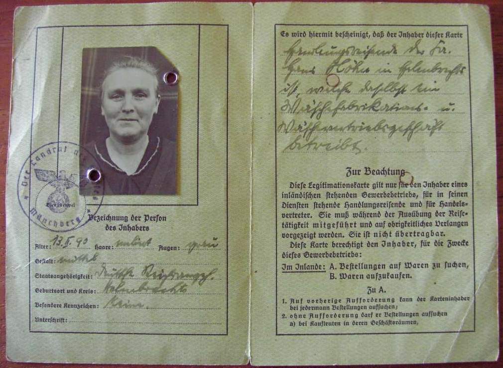 Legitimationskarte für Kaufleute, Handelsvertreter und Handlungsreisende