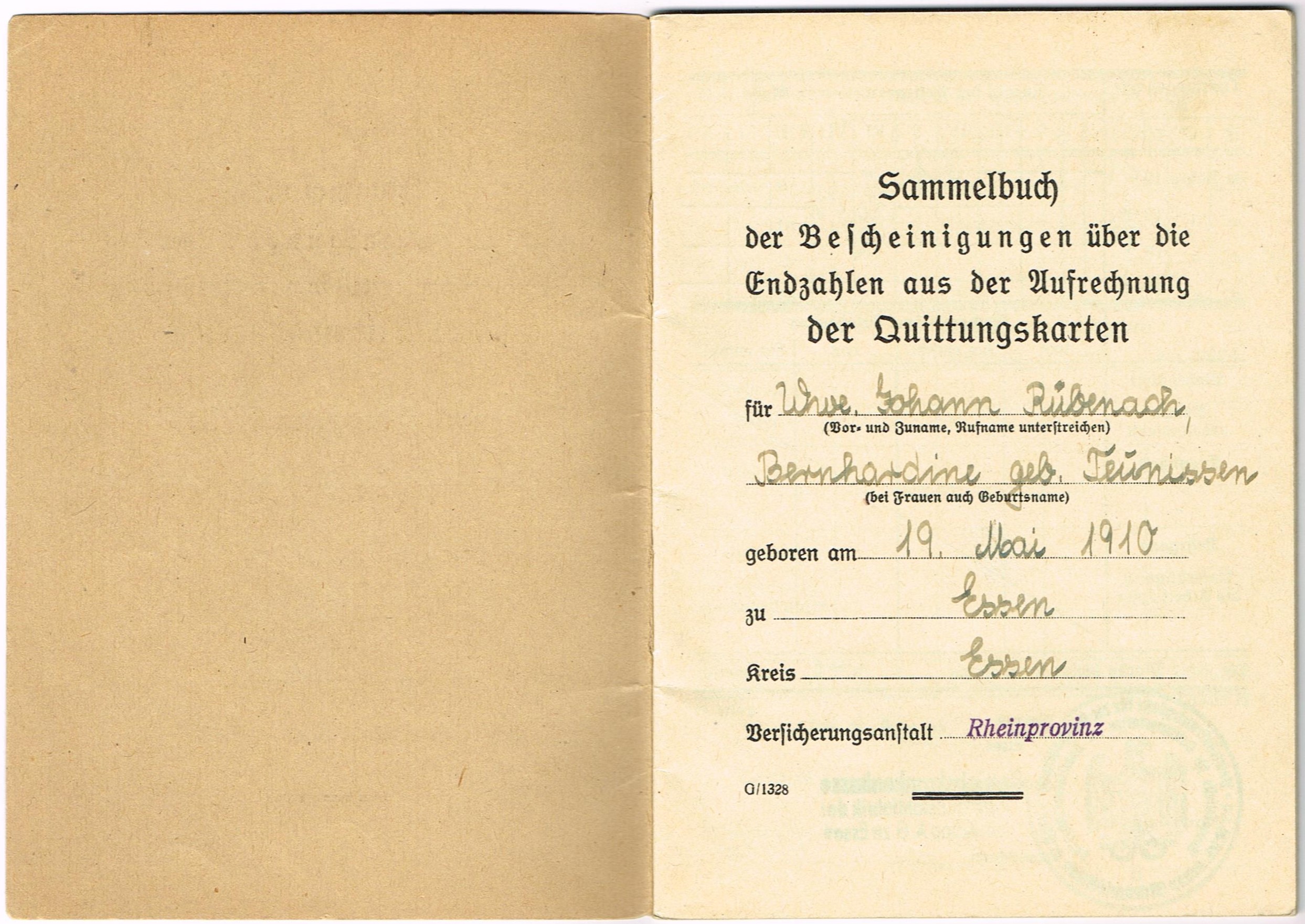 Sammelbuch der Bescheinigungen über die Endzahlen aus der Aufrechnung der Quittungskarten