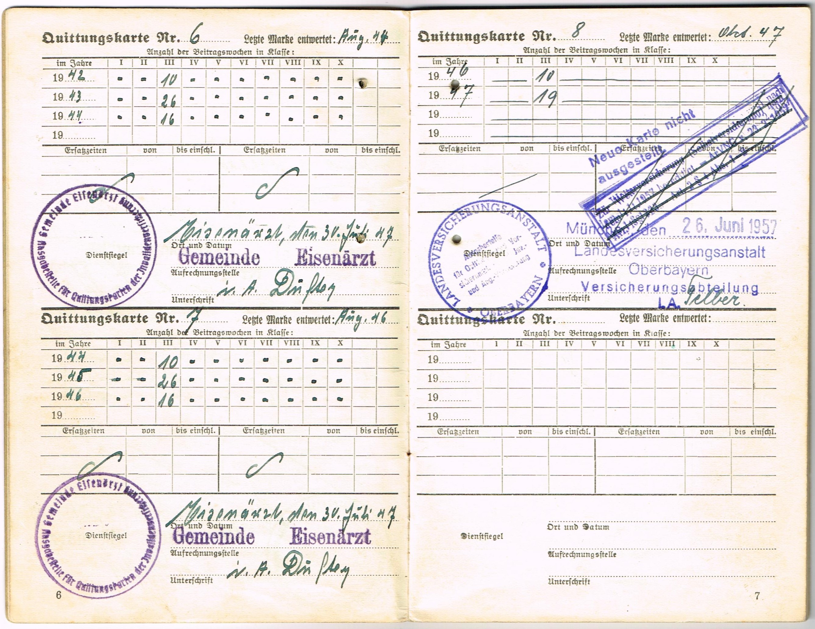 Sammelbuch der Bescheinigungen über die Endzahlen aus der Aufrechnung der Quittungskarten