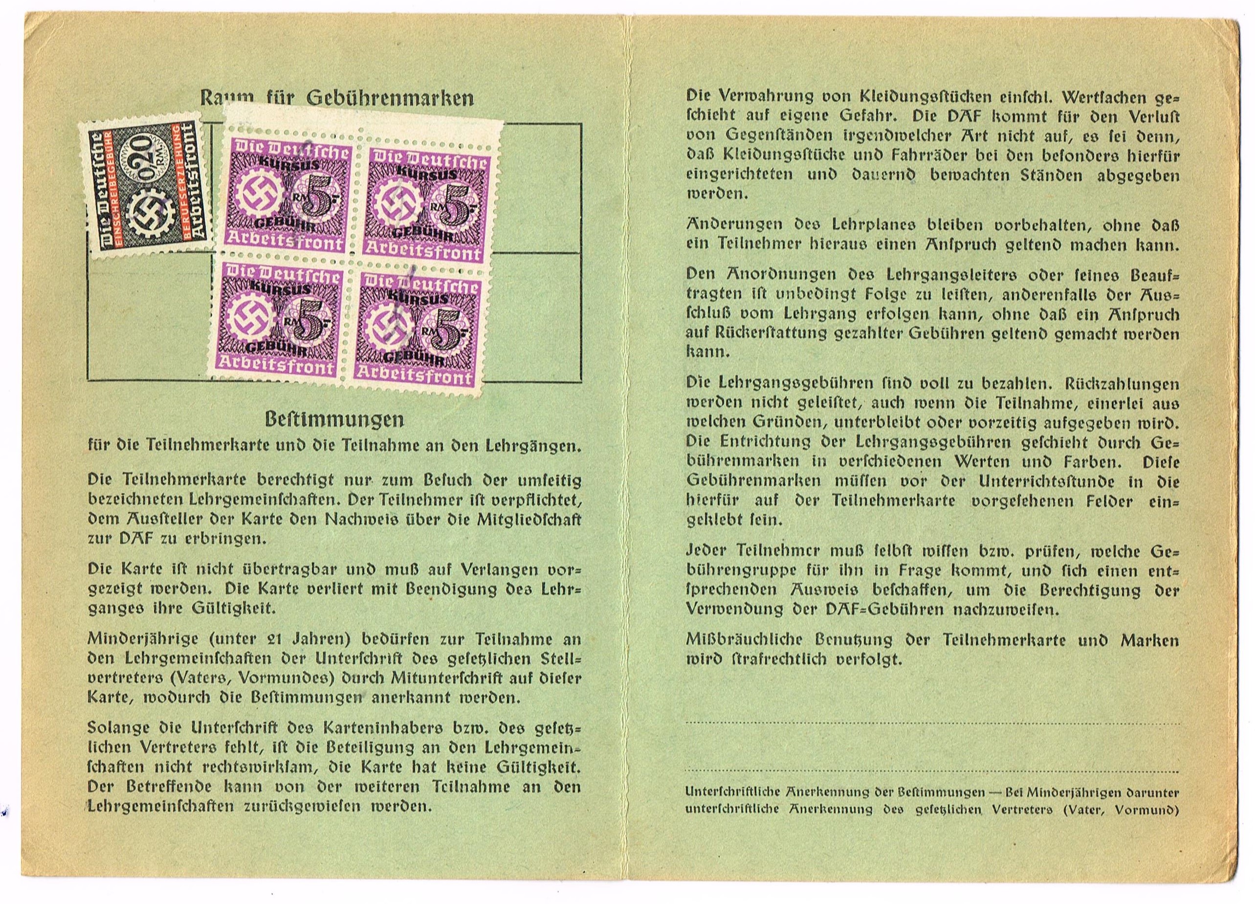 Teilnehmerkarte DAF - Gauwaltung Ost-Hannover