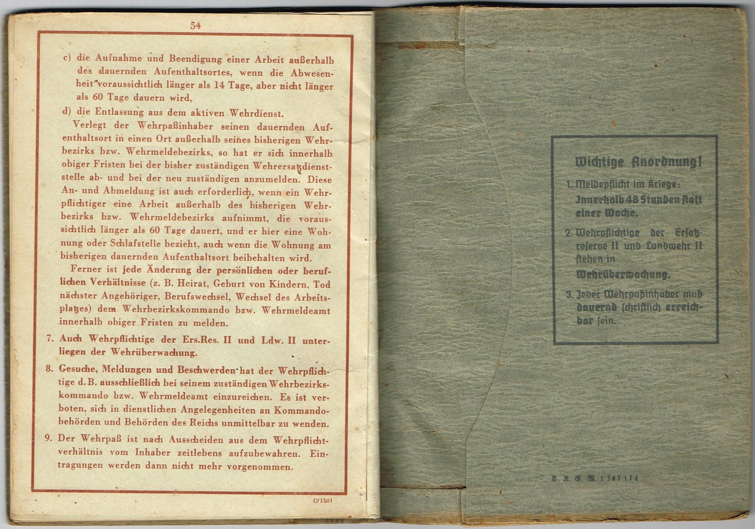 Wehrpass 2nd model - Nr I/99/351/9 + Wehrpass Notiz, Volkssturm, Ausmusterungsschein
