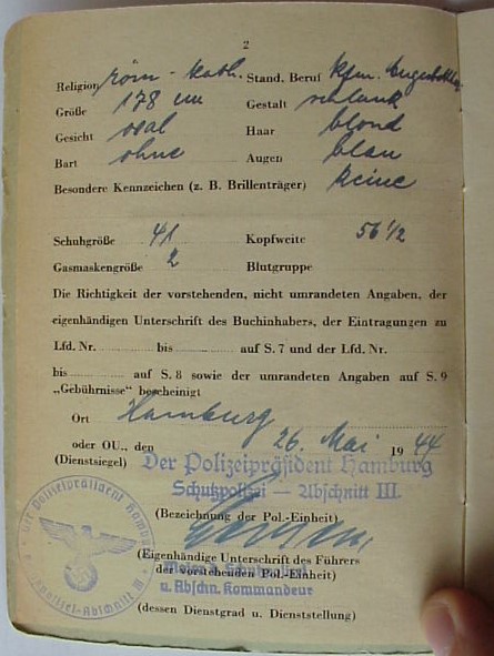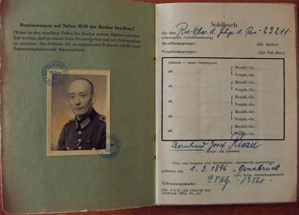 Soldbuch zugleich Personalausweis - Polizei - Bernhard Josef Risau