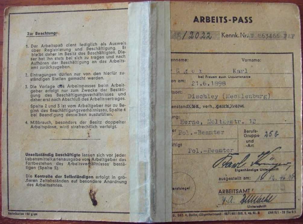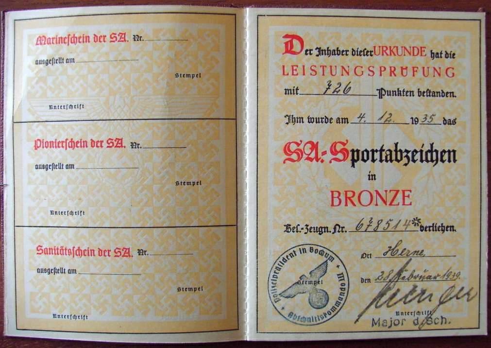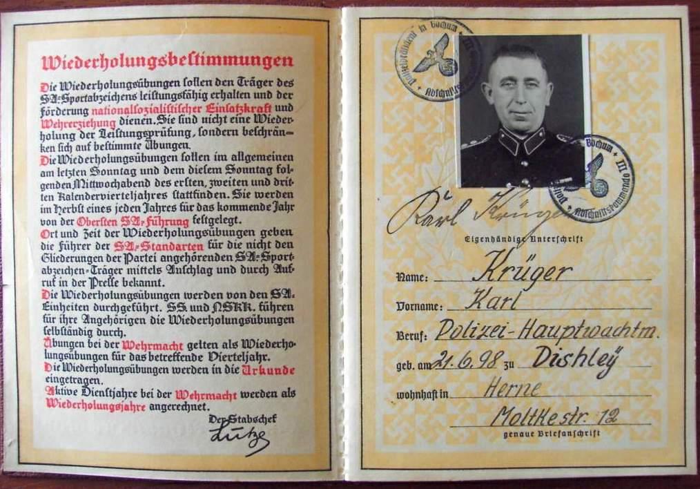 SA Urkunde + Arbeits-Pass - Karl Krüger