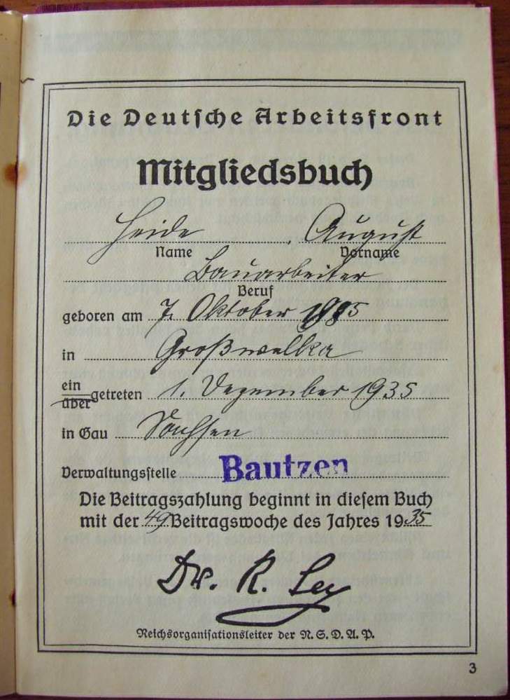 DAF Mitgliedsbuch - Verwaltungsstelle Bautzen