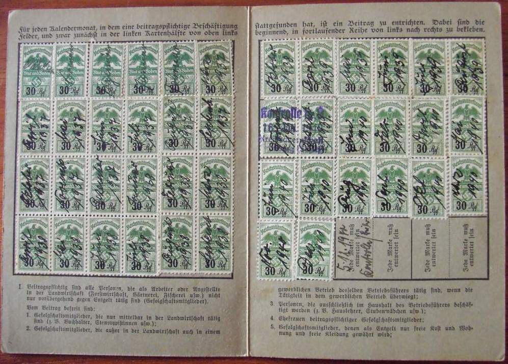 Reichsnährstand Beitragskarte