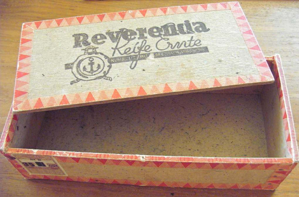 Wooden cigar box ‘REVERENCIA’ - empty - post-war overprinted