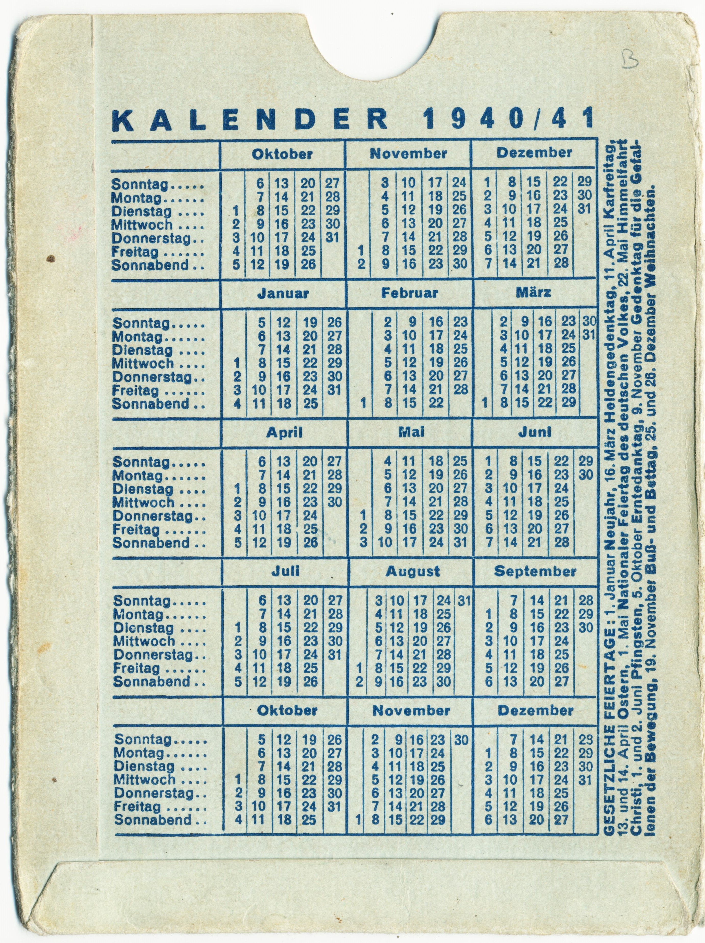 Sleeve Reichskleiderkarte + calender 1940/41