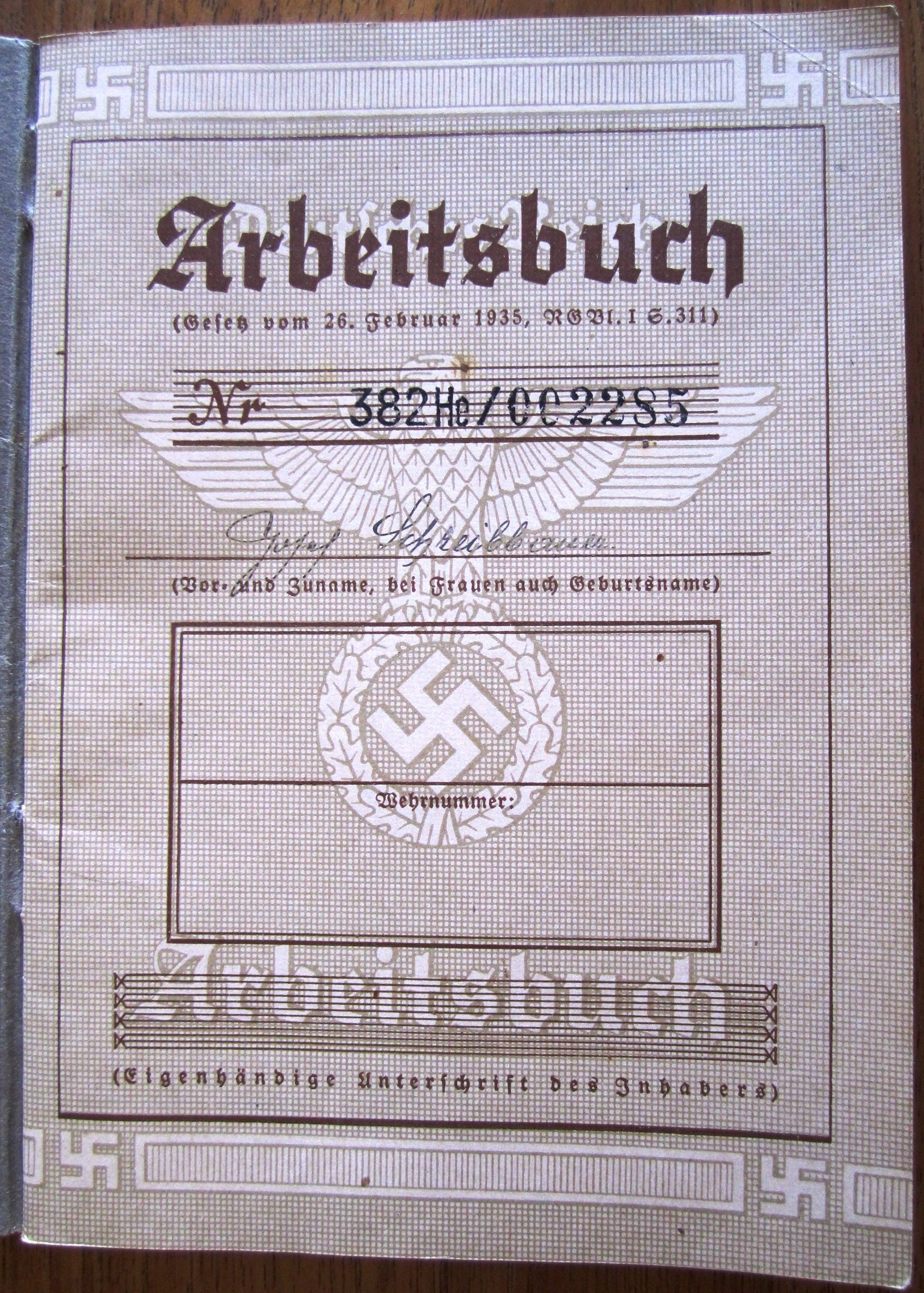 Arbeitsbuch 2nd model Nr 382He/002285 - Josef Schreibbauer