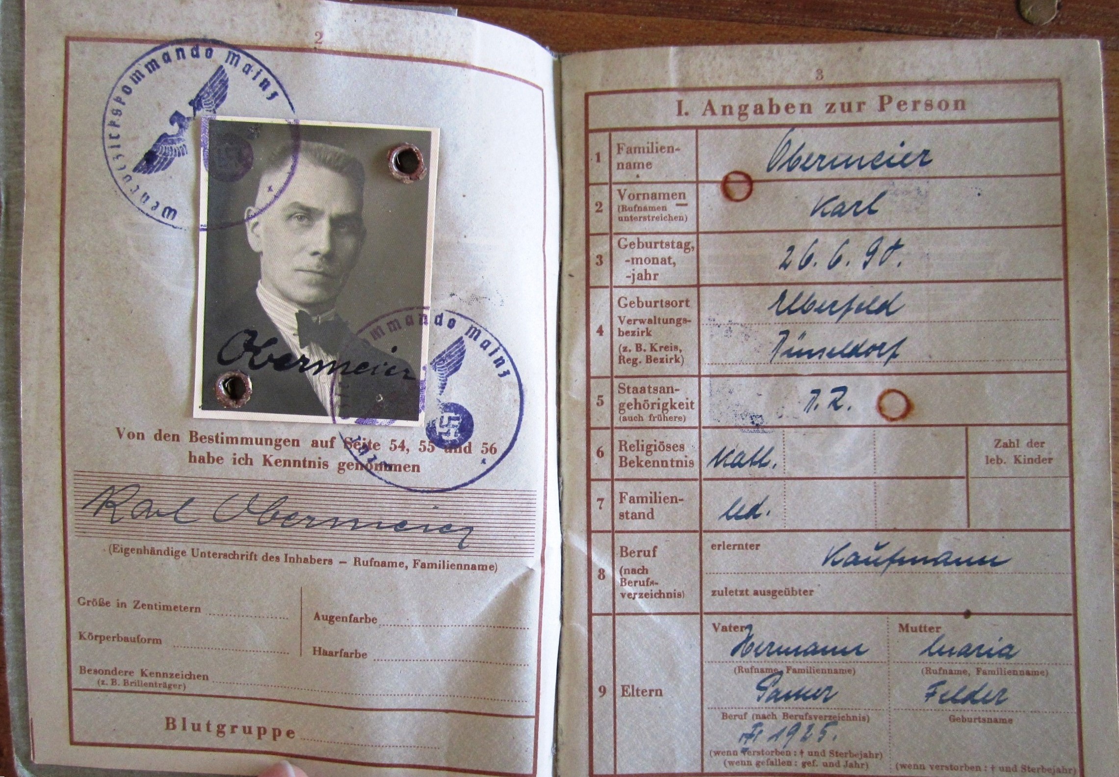 Arbeitsbuch 2nd model Nr 209/39167 - Karl Obermeier