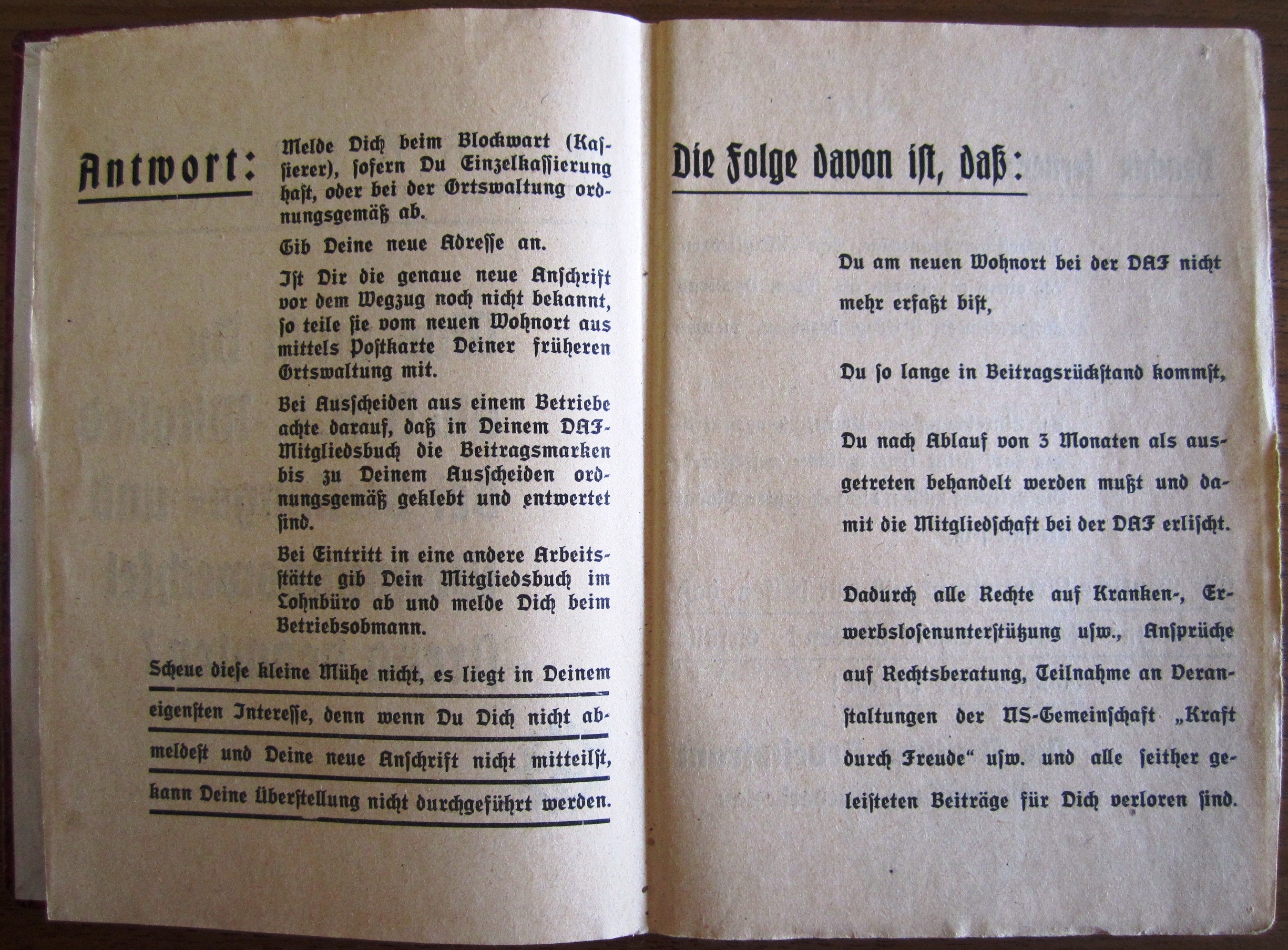 DAF Mitgliedsbuch - Marie Lintner + Merkblatt + Lohnsteuerkarte 1944 + Brief NSDAP Kreisleitung Melk