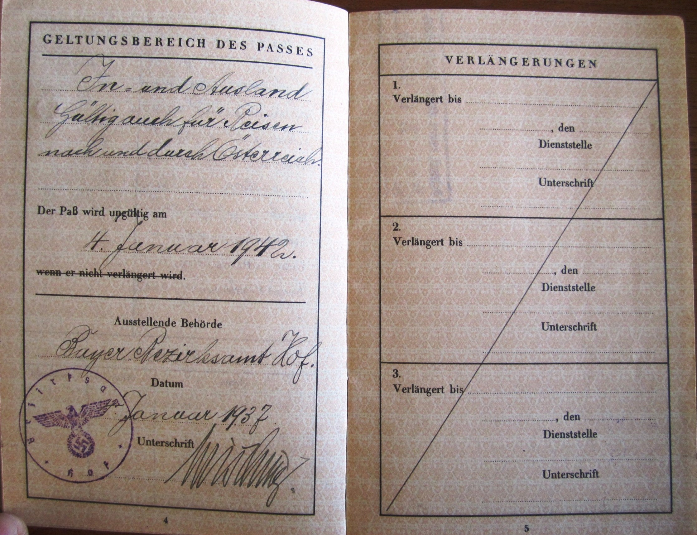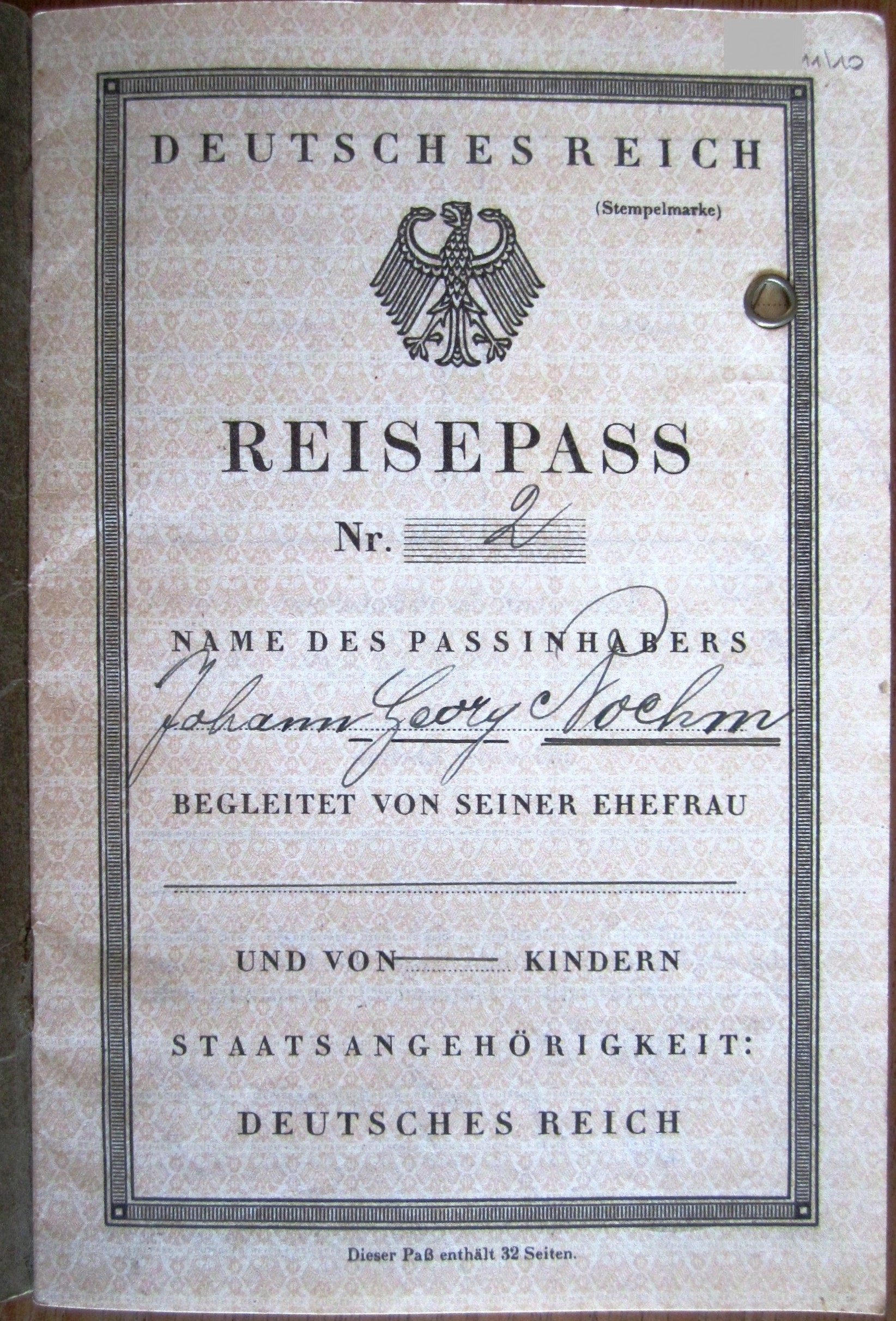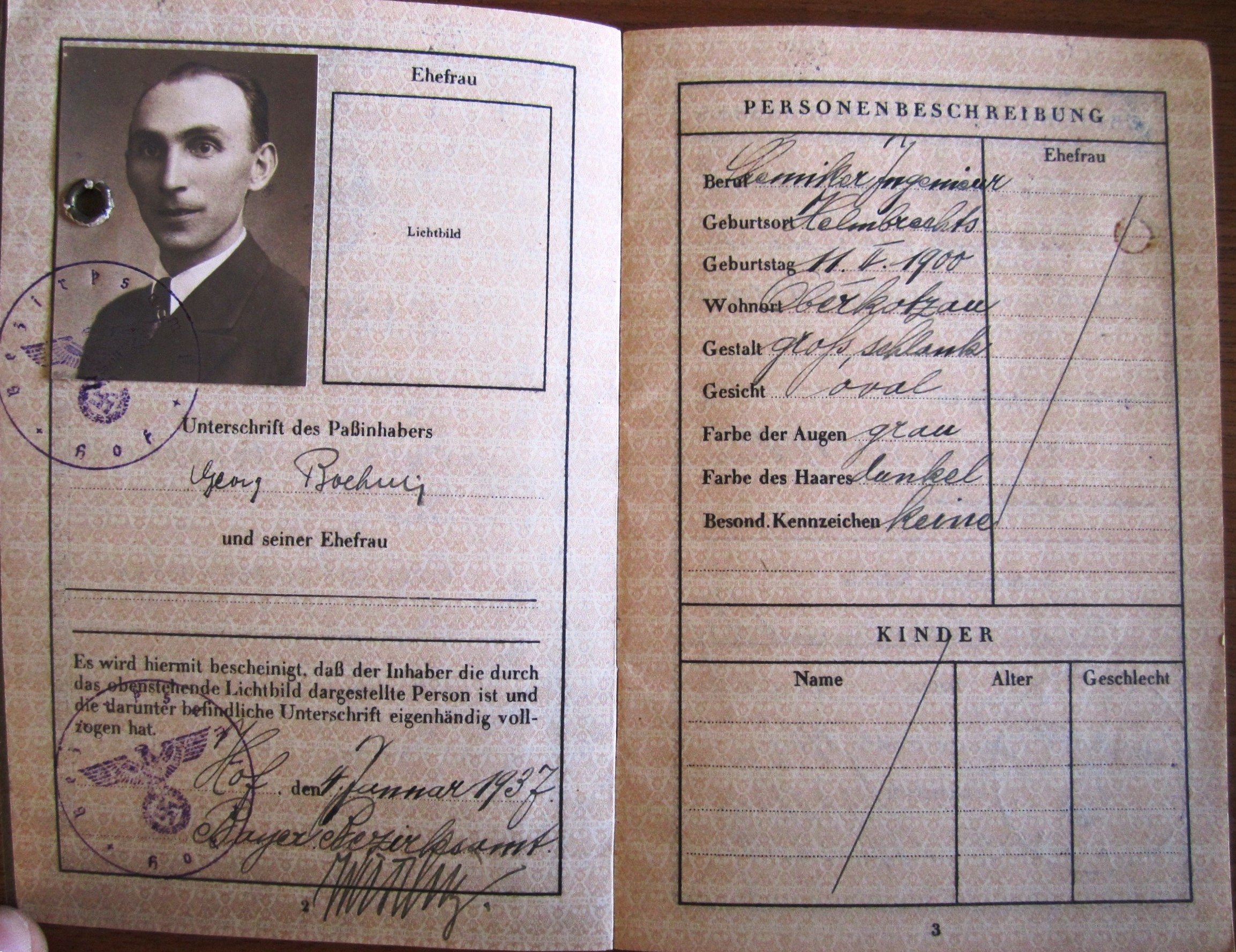 Reisepass 1-1937 + Johann Georg Boehm