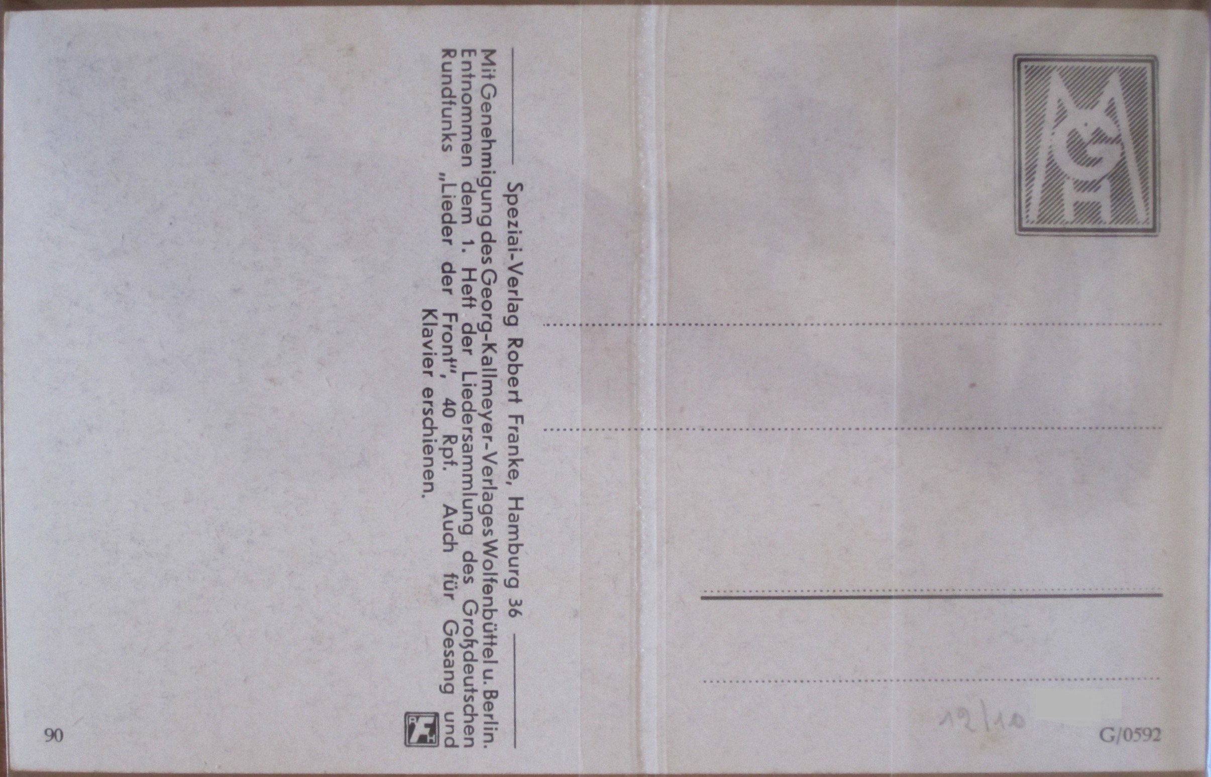 Postcard : Song : Die von der Panzerkompanie - G/0592