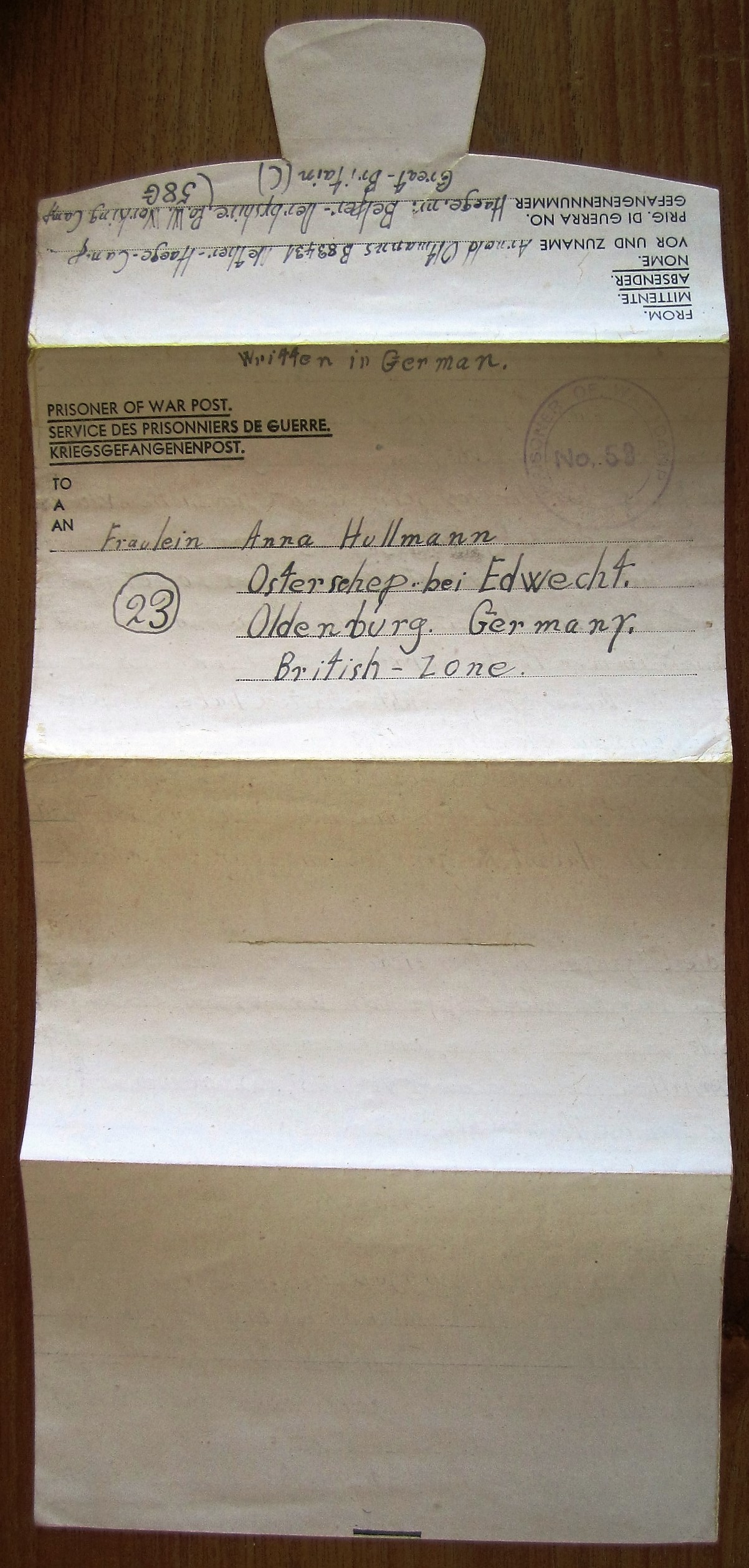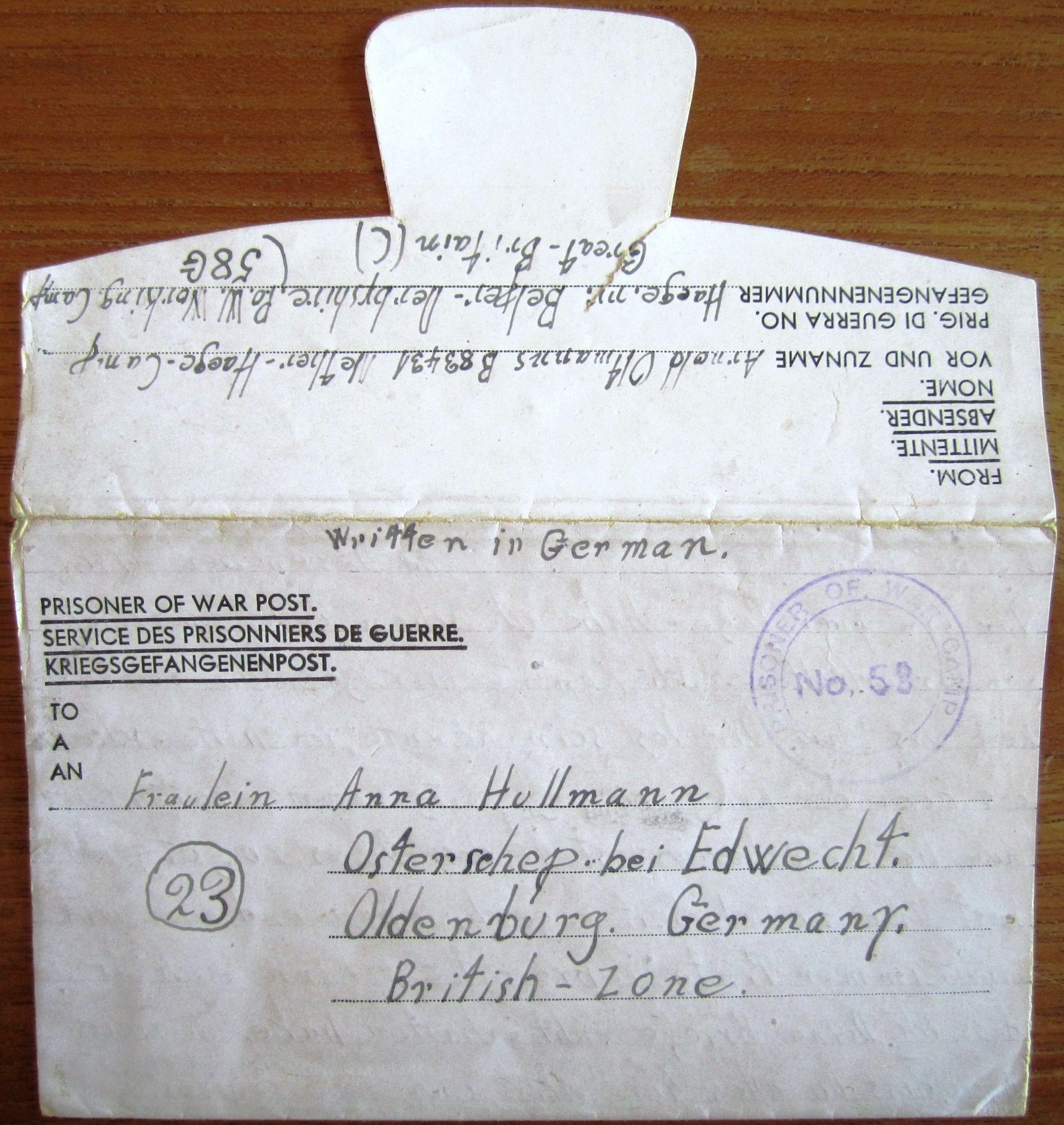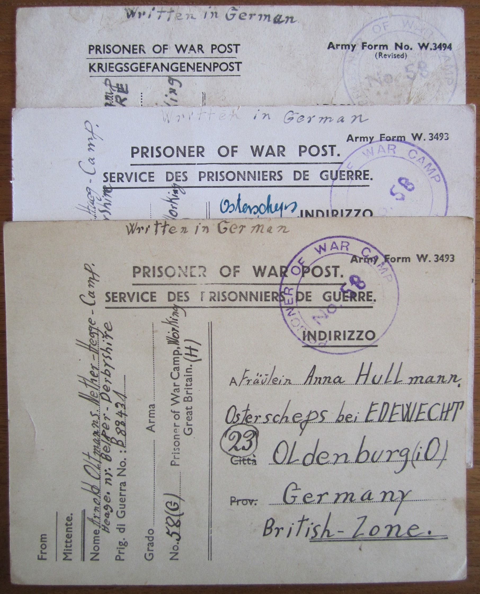 Prisoner of war post - Kriegsgefangenenpost - Army Form No. W.3494 / W. 3493 - Familie Hullmann - Oldenburg - British zone