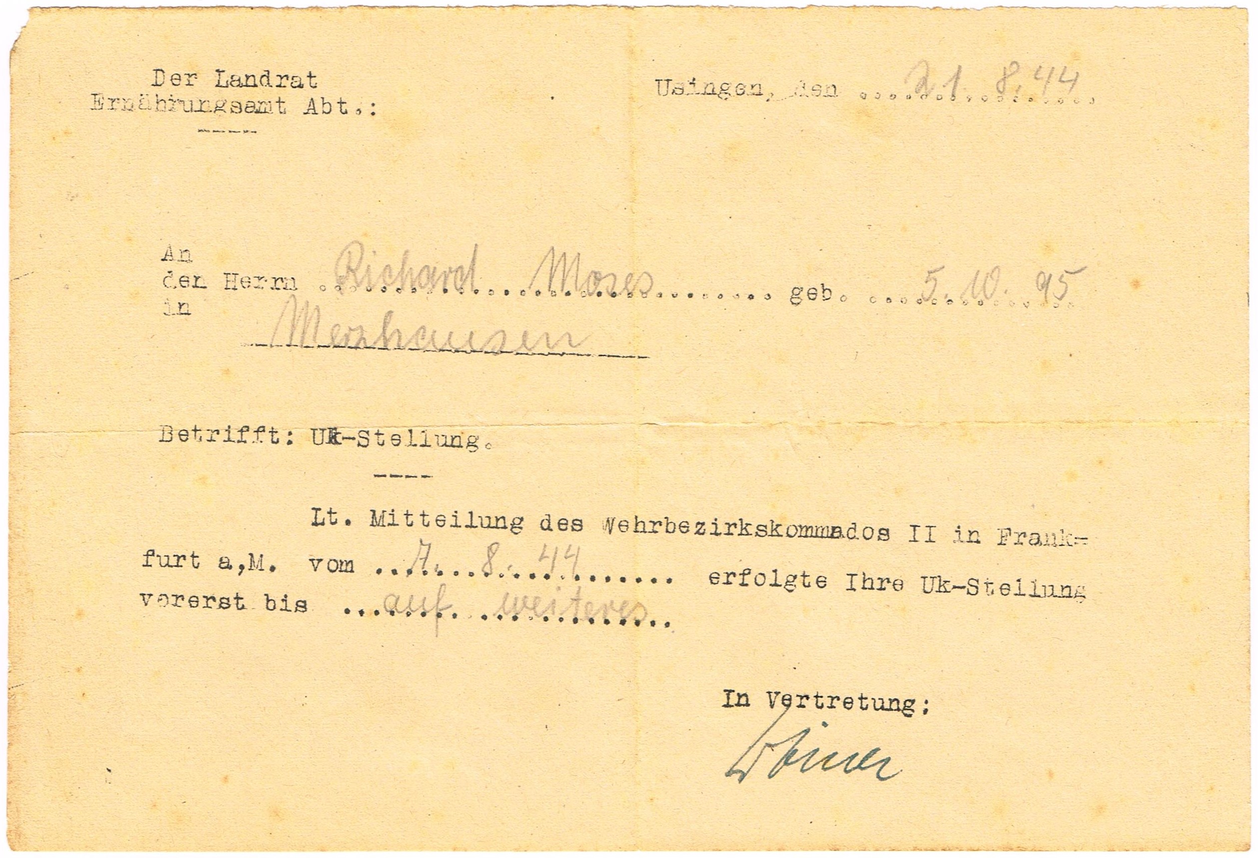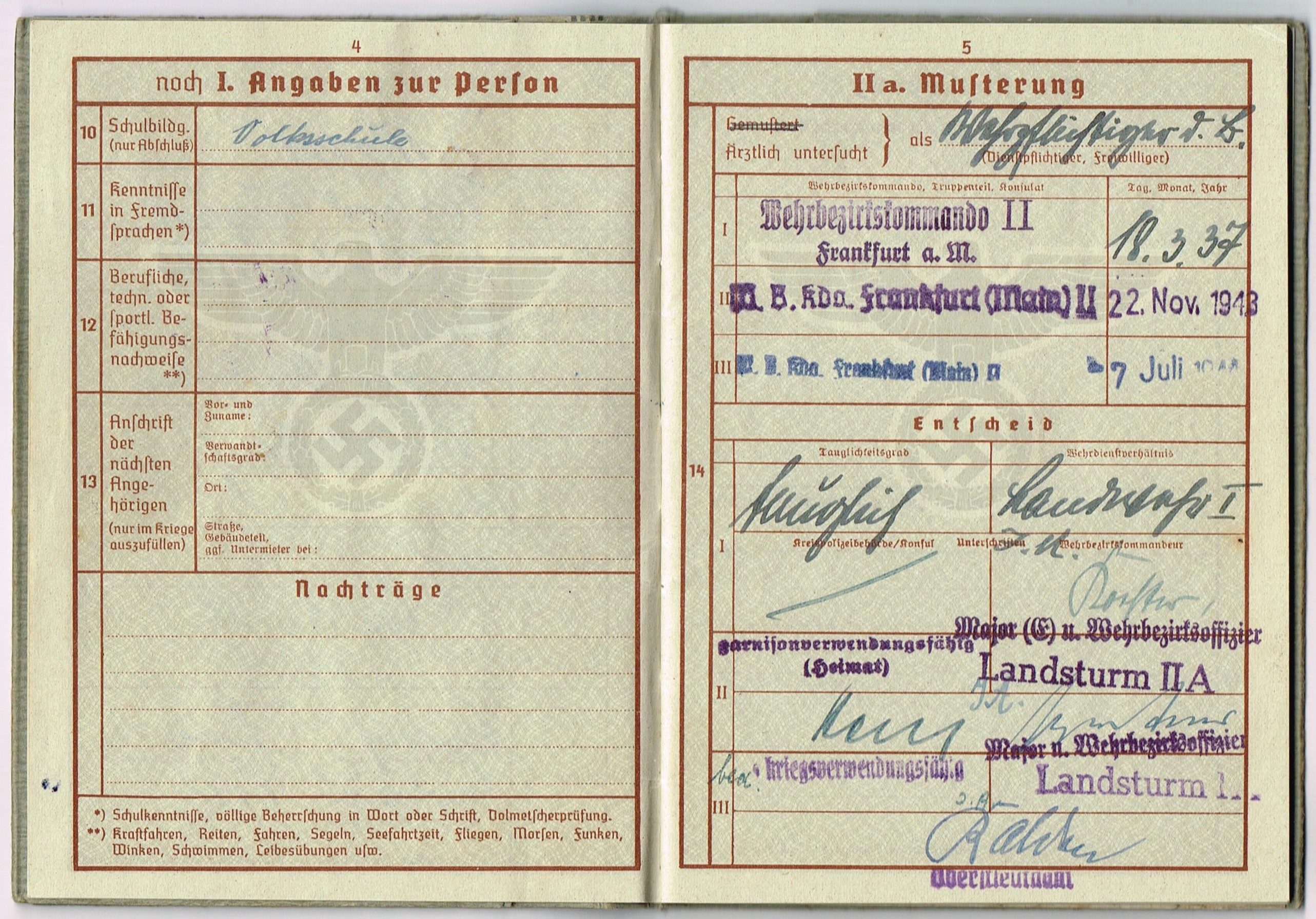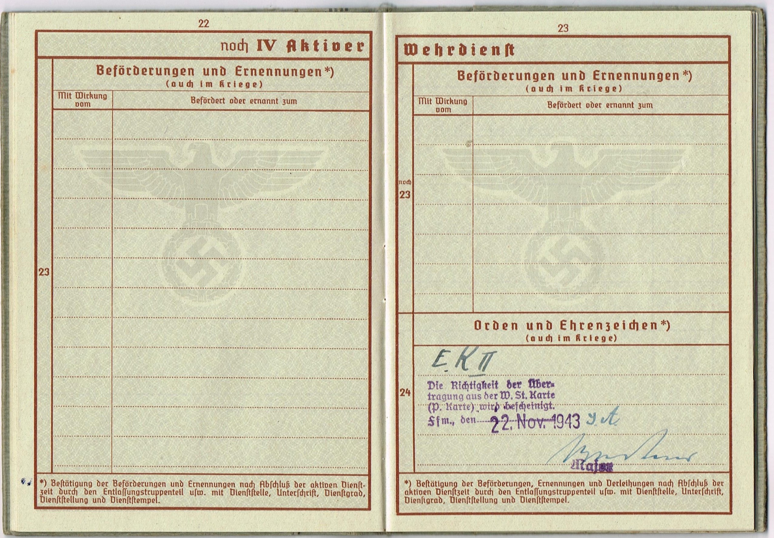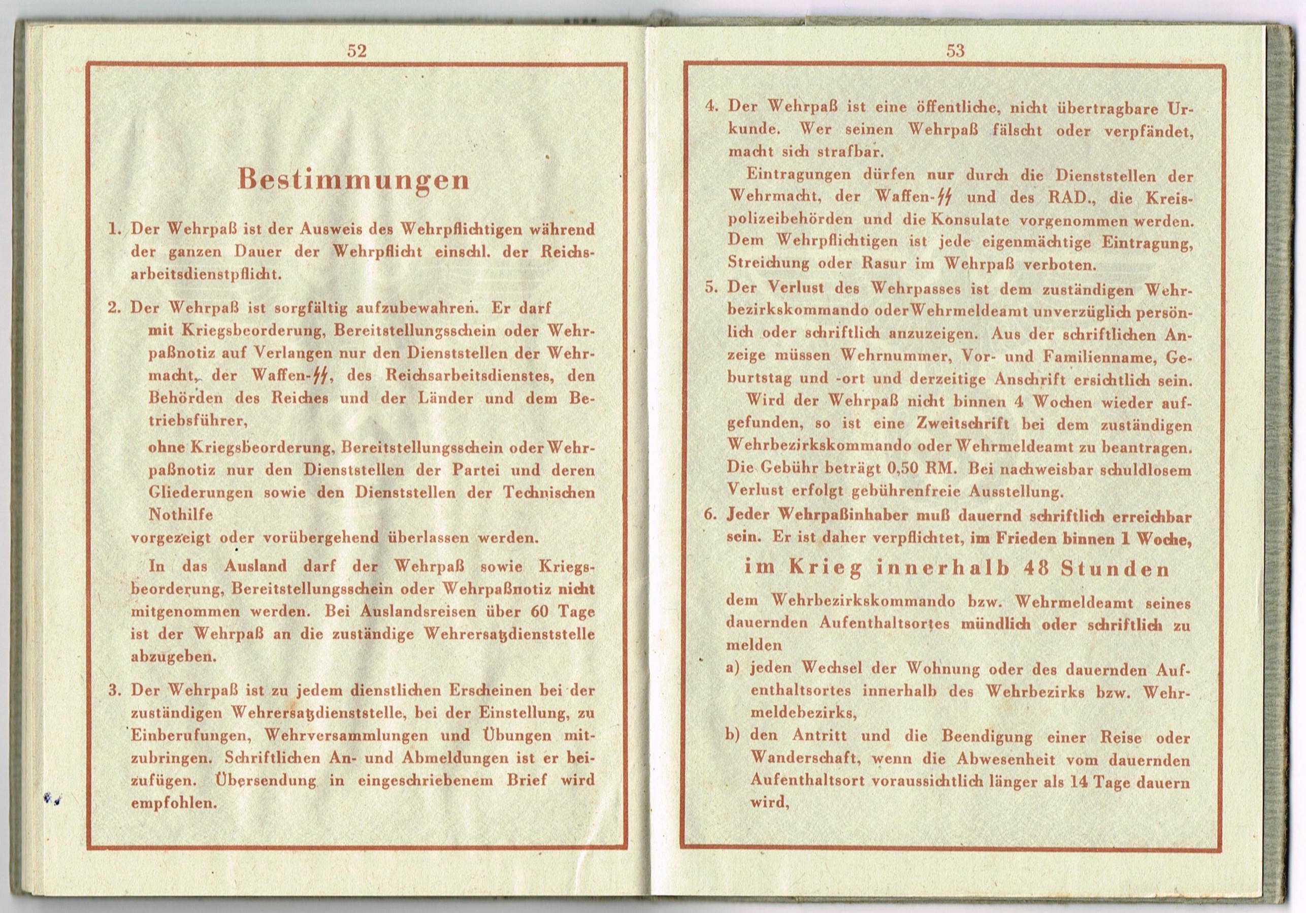 Wehrpass 2nd model + UK-Stellung + Wehrpass Notiz Muster D - 193/32/2 - Richard Moses